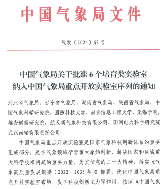 近日,中国气象局发文,批准中国气象局生态系统碳源汇重点开放实验室(培育类)纳入中国气象局重点开放实验室序列。