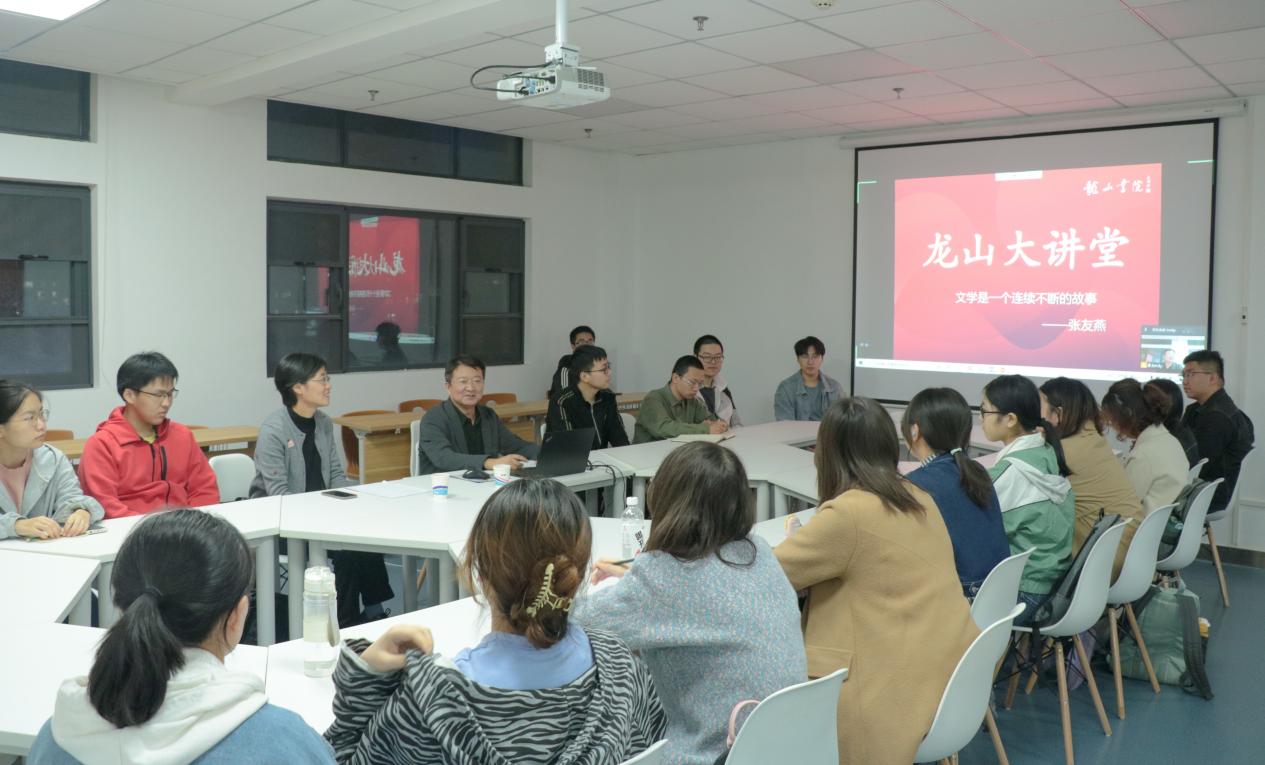 为帮助同学们了解世界文学的发展历史,提升文学素养,促进同学们的全面发展,龙山书院于10月18日晚开展龙山大讲堂第六期,特邀比较文学与世界文学博士、文学院硕士研究生导师张友燕主讲“文学是一个连续不断的故事”专题讲座。活动线上线下同步进行,由龙山书院院长唐国跃主持。