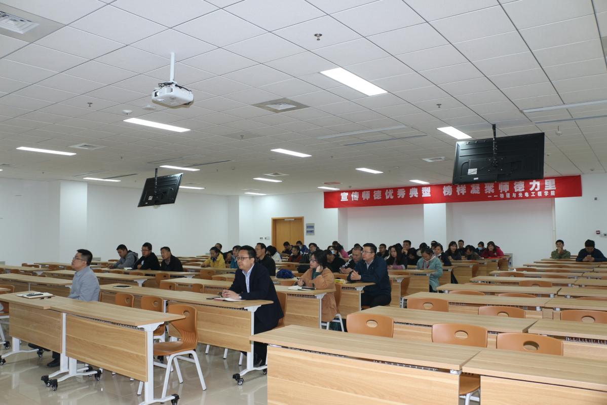 为进一步落实“立德树人”根本任务,引导教师抓好抓牢教学工作、弘扬爱岗敬业精神,物理与光电工程学院于10月22日下午在藕舫楼205召开全体教职工大会工作会议,副院长赖敏、副院长赵德林及全体教职工参加会议,会议由学院党委副书记、副院长田智主持。