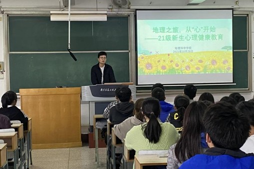 为普及心理健康知识,帮助21级新生解决初入大学的焦虑、迷茫等各种心理问题,调整良好心态,更好地融入大学生活,10月28日下午,地理科学学院特邀校心理中心李文浩老师在明德楼N201举办了“地理之旅,从‘心’开始”——心理健康教育讲座。新生辅导员段艳老师以及2021级全体新生参加了此次活动。