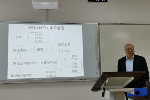 苏向荣教授从逻辑的定义切入主题,介绍了自古希腊以来中外关于逻辑和逻辑学的定义与学术观点。他强调逻辑学是一门基础而重要的学科,联合国教科文组织(UNESCO)1974年颁布的七个基础学科中,逻辑学位居其一。他指出,逻辑学是一门思维科学并通过对人工语言研究展现理性思维,逻辑思维的理性贯穿在立法、执法、司法、守法等各种法治领域,表现为侦查逻辑、道义逻辑和论辩逻辑。逻辑思维是法学生所应当掌握的知识和能力,他希望法学专业学生能够博览群书,在保证专业知识的基础上广泛涉猎,积极学习其他领域的知识,加强知识的灵活运用。