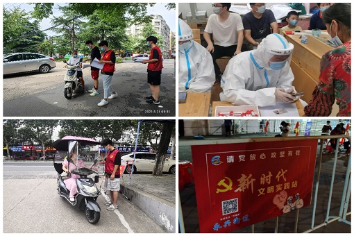 暑假多地爆发新一轮新冠疫情,环科院三位同学在志愿服务过程中服从安排、兢兢业业,坚守岗位,严肃认真地完成自己所负责的工作。炎炎夏日,他们用自己饱满的热情为广大群众筑起一道安全防线,展现新时代青年的责任和担当。