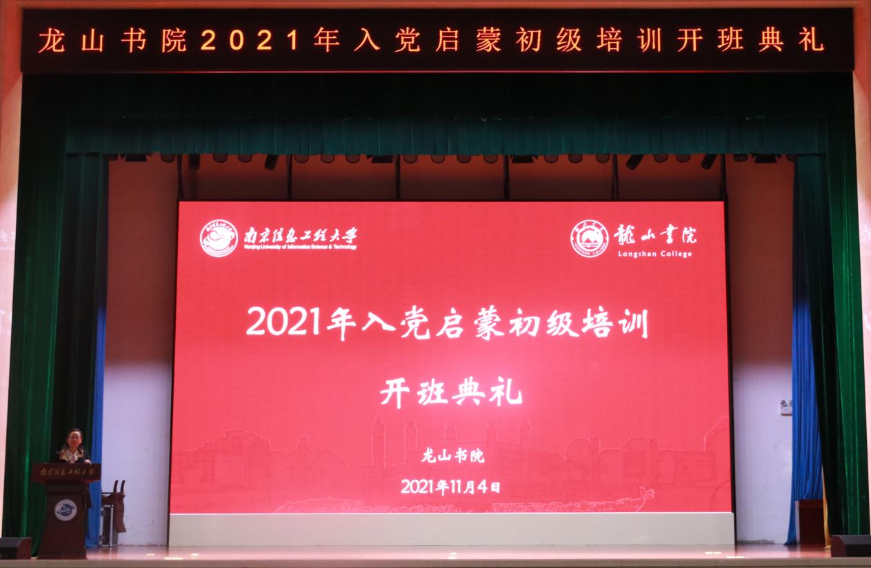 为帮助同学们对中国共产党有更加正确、深入的了解,形成正确的世界观、人生观、价值观,端正入党动机,自觉接受党的思想教育,龙山书院于11月4日在风云剧场举行2021入党启蒙初级培训开班典礼,典礼由龙山书院党总支副书记、副院长刘红梅主持,龙山书院全体2021级学生参加。