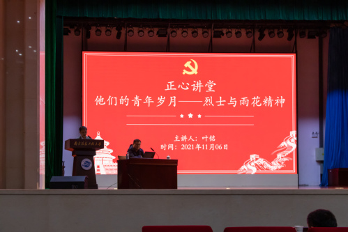 叶铭围绕“他们的青年岁月——烈士与雨花精神”的主题,详细介绍了晓师十英烈——叶刚、石俊、郭凤韶等人的生平事迹与贡献,用简洁的16字概括了雨花英烈精神的内涵——“信仰至上、对党忠诚、舍生为民、勇于担当”,为现场的同学们呈现了一堂生动且有意义的讲座。