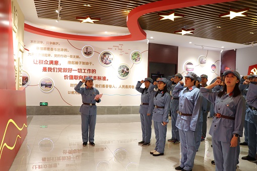 接着,大家换上红军装备,周淑琴书记领誓,全体党员在党旗党徽下重温入党誓词,牢记初心使命。随后,党员们参与“忆长征”户外红色体验,“亲历”了“激战腊子口”“穿越封锁”“担架救援”“成功突围会师”等场景,切身感受红军长征的艰辛和不易,纷纷表示今后会进一步传承长征精神,不忘初心、牢记使命,砥砺前行。