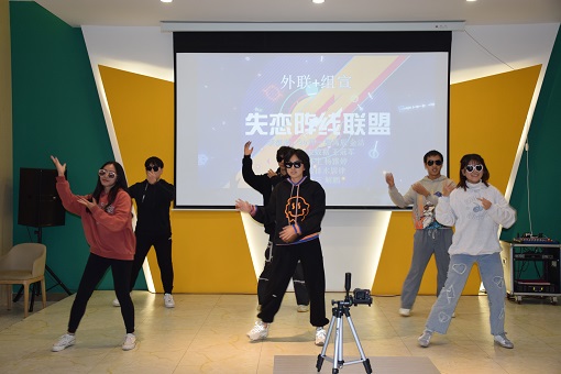 舞蹈《失恋阵线联盟》中,演员青雉的面庞带上墨镜,反差感极其强烈,幽默风趣的姿态引得台下的同学和老师们捧腹大笑,欢乐十足。随着节目接近尾声,所有演职人员一起合唱《我和我的祖国》,每个人都情绪高昂,满腔热血,用歌曲表达出浓厚的爱国情怀,将迎新晚会推向高潮。