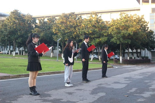 升旗仪式以电信院学生代表带来的诗朗诵《初心如磐,奋楫笃行》结束,学生代表们以饱满的热情高声朗诵,体现了新时代青年学生的志气与梦想,激励在场其他同学传承北斗精神,胸怀科技报国雄心,争做新工科人才。