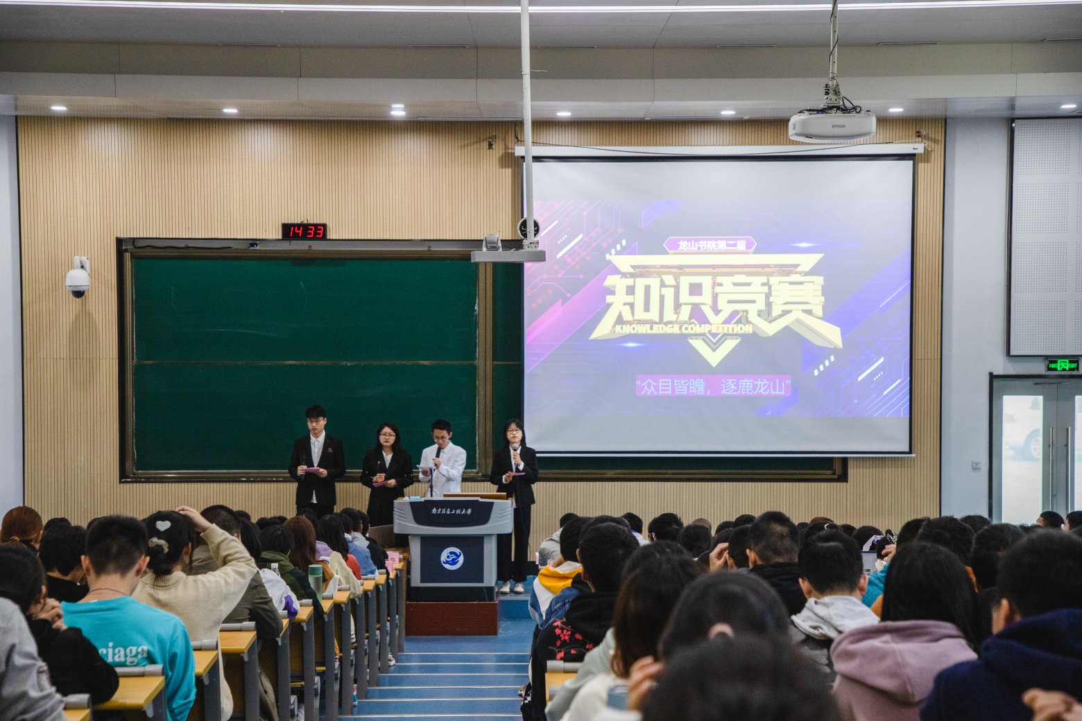 本次竞赛由单刀赴会,强强对决,巅峰之战三轮比赛组成,每轮比赛均采用激烈的淘汰赛规则。题目丰富多样,主要部分为气象类问题,贴合学生专业背景。此外,比赛的题目还包含有历史,文学以及科学等方面的内容。参赛队员赛前踊跃报名并准备比赛内容,在赛场上都展现了自己的实力和耐力,打了一场激动人心的“战役”。三轮比赛间隙,还设计有观众抢答的福利环节,现场观众激情高涨,踊跃参与,展现了同学们积极良好的学习态度。