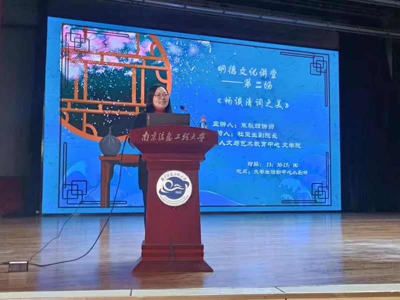 为弘扬中国传统文化,提升广大师生文化自信和文学素养,11月11日下午,由人文与艺术教育中心和文学院联合举办的本学期明德文化讲堂第二期讲座在大学生活动中心小剧场如期举行。文学院教师朱秋娟博士作了题为“畅谈清词之美”的讲座,文学院副院长杜玉生主持。