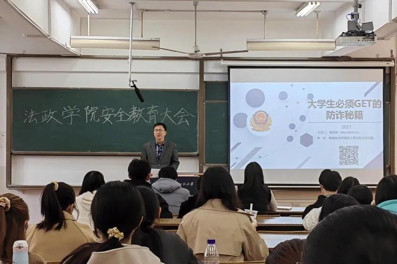 11月11日,法政学院在滨江楼BN204教室开展全体宿舍长大会。本次会议邀请盘城派出所驻南信大社区民警常欣妍警官主讲,法政学院全体宿舍长参加,会议由学院党委副书记朱文镇老师主持。
