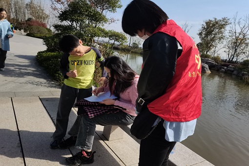 此次活动主要以问卷调查的形式展开,志愿者准备了100份问卷,内容主要包含对栖霞山环境及基本环保知识等问题的调查,由志愿者们现场分发给不同年龄阶段的游客。志愿者们与参与调研的群众进行友好交流,一起探讨时下环保相关问题。