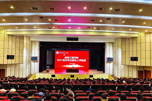 11月17日晚,管理工程学院在大活小剧场举行2021级本科新生集中入学教育,特邀南京市公安局江北新区分局盘城派出所民警常欣妍、学校国际合作与交流处谢瑶老师、教务处孟克博士做专题入学教育,新生辅导员以及370余名同学参加。会议由学院党委副书记、副院长黄锐主持。