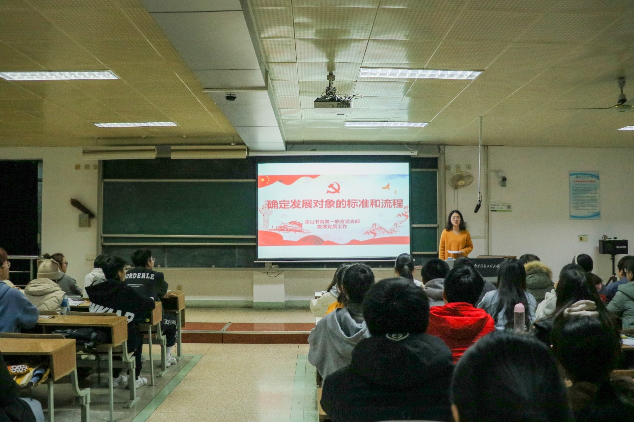 紧接着,赵雅仪又为同学们仔细讲解了龙山书院确定发展对象的标准和流程,梳理了发展对象的基本条件、时间和程序,再次向同学们展现了党员发展工作的谨慎和严格,帮助同学们理明努力方向、确定清晰目标,争取以实际行动早日光荣入党。