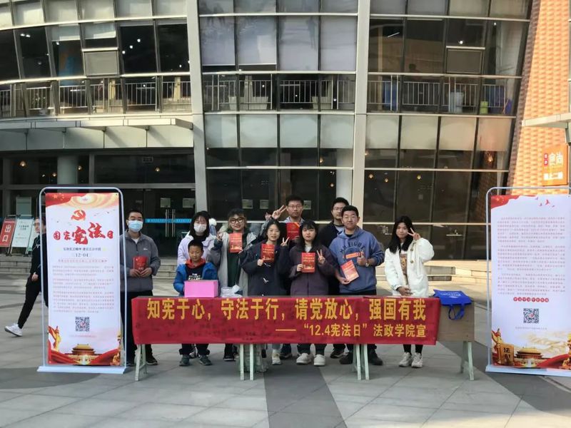 2021年12月4日是第八个国家宪法日。为了弘扬宪法精神,增强全民法制观念,为实现“两个一百年”奋斗目标、实现中华民族伟大复兴的中国梦营造良好法治环境,在今年“12.4”法制宣传日到来之际,法政学院在学校东苑、西苑食堂门口开展以“知宪于心,守法于行,请党放心,强国有我”为主题的宪法宣传活动。本次活动由分团委书记(代)刘少云老师指导,法政学院研究生会学术部主办,法言社、法援协办。