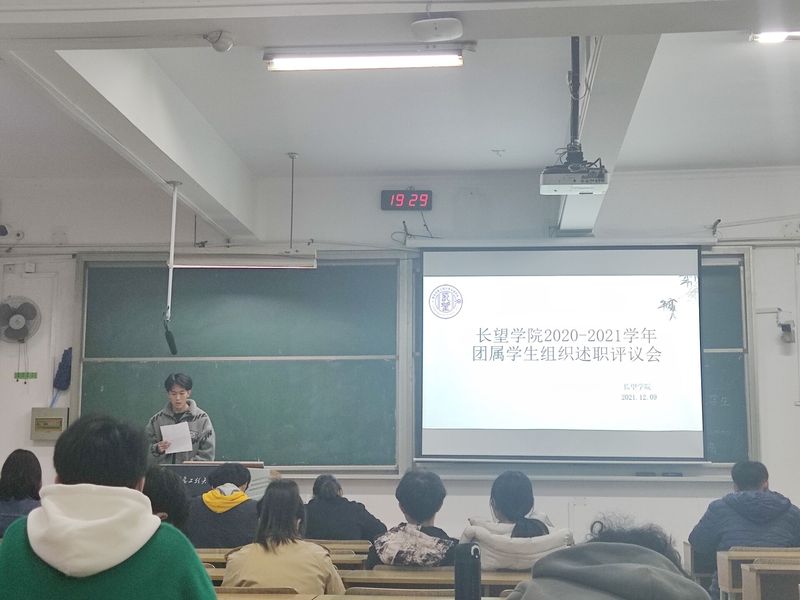 为规范团学组织工作,履行好各级各类学生组织工作职责,在工作中总结经验,更好的体现学生组织的服务功能,提升团学组织学生干部的工作能力,12月9日,长望学院2021年团属学生组织述职评议大会在明德楼N109如期举行。本次大会由团委副书记李嘉奇同学主持,评议组成员由学院团委书记赵魏丹老师带领全院各班团支部推选学生代表30余人组成,现场针对各部门各版块工作情况进行评议打分,长望学院团学组织全体学生干部参加此次中期述职述评。