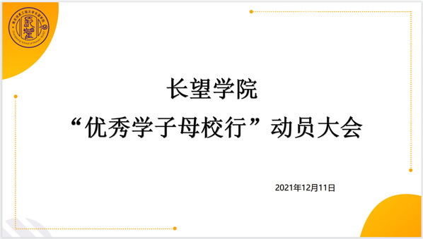 为保证2022年“优秀学子母校行”社会实践活动的顺利进行,长望学院于12月11日举行了线上培训大会,本次大会由长望学院学办主任高婷婷主持,全体报名此次活动的同学参加,并邀请了2018级的金云伟同学和2020级的邹浩天同学担任特邀嘉宾。