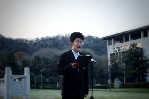 2019级信息管理与信息系统专业马宇作为学生代表发言,他号召同学们铭记历史苦难,珍惜幸福生活,学以致用,用心守护好这片和平。升旗仪式上,学生代表还诵读了《和平宣言》,用实际行动表达了管工学子对遇难同胞的深切缅怀与对和平来之不易的珍惜之情。