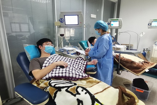 其中刘官知仪同学的血小板条件优秀,在血液中心工作人员的科普和建议下,决定献出两个单位的血小板,整过过程持续一个多小时。她说:“医生告诉我‘一个单位的血液能救助一个病人’,所以我决定献出两个单位的血液,我觉得实现了自我价值,使命感油然而生。”其他同学纷纷为它点赞。
