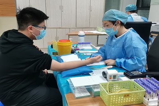 完成相关信息登记后,同学们开始进行血液检测。在等待的过程中,同学们自发地对血液中心进行参观,了解血液中心的发展历程以及各界爱心人士对南京市血液中心的帮助和支持。血液检查结果出来后,符合献血要求的同学们在工作人员的耐心疏导下克服了对献血的紧张,还学会了观察献血机器的数据变化。