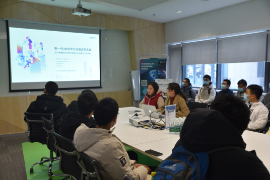 活动伊始,腾讯众创空间工作人员向同学们详细介绍了空间的基本情况及其未来发展趋势,欢迎同学们在寒暑假期间到腾讯众创空间实习积累经验。接着,同学们走访了腾讯众创空间入驻企业——南京视网么信息科技有限公司,负责人向同学们介绍了当前增强现实科技的发展形势、国内AR技术头部企业和AR技术在相关领域的应用前景。同学们对AR技术表现出浓厚的兴趣,在负责人介绍完毕之后,纷纷拿起手机下载视网么APP,扫描宣传手册上的图片近距离切实感受AR技术。针对同学们在体验AR技术过程中产生的疑问,工作人员热心细致地予以讲解其中的技术原理。然后,同学们来到海智湾紫东国际人才街区,学习了解腾讯企业以及政府赋予大学生创新创业的支持鼓励政策。在人才街区的会议室,由三位非常优秀的导师,包括腾讯公司腾讯云教育行业华东区运营的曾理老师,上海科探信息技术有限公司的陶桦老师,以及江苏群立现代信息科技发展有限公司的梅颂老师,为同学们带来前沿技术、创业经验和个人成长分享。在互动环节,谢杨柠、陆栩言等同学积极向三位企业老师就职业规划、个人成长、未来创业、专业前景等问题虚心请教,三位老师结合自身的创业工作经历,一一解答了同学们的疑惑。同时,与同学们就腾讯公司应担负的社会责任、元宇宙如何引领IT 发展等问题展开热烈讨论。