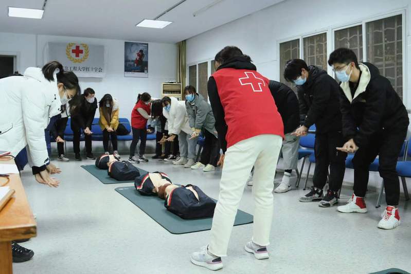 本次初级救护员应急技能培训分为理论讲解和实际操作两部分,由南京市红十字服务中心成员主讲,校医务所人员协助讲解实际操作。活动包括三项技术课程:心肺复苏、自动体外除颤器以及气道梗阻。红十字会培训人员对各类急救步骤和方法进行了深入细致地讲解,介绍了各种方法的功能和注意事项,在培训人员亲身示范后,同学们现场进行操作学习。除此以外,培训人员还通过播放视频的方式让同学们更加清晰了解急救的过程和相关器械的使用。培训结束前进行了当堂结业测试,通过即可申请救护员证书。