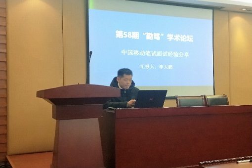 在本次论坛中,段儒杰同学与李大鹏同学分别就中国电信与中国移动笔/面试,做出了自己的经验分享。首先,段儒杰同学对中国电信做了一系列详细的介绍。随后,他具体描述了在参加中国电信笔试与面试前应该做的准备,包括备考刷题与心理调节等。他指出,在笔试与面试过程中,最重要的是放平心态,答出自己应有的水平。李大鹏同学针对段儒杰同学的分享做了一定的补充,并且通过对中国电信与中国移动的对比,列举出现实中的具体问题,强调同学们要根据自身实际,选择最适合自己的方向。