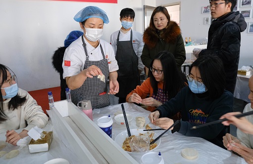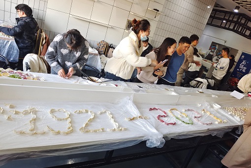 食堂阿姨首先向同学们示范了包饺子的一般手法,讲解了包饺子的技巧和注意事项。随后,同学们分组行动,八仙过海各显神通,每一组都将自己的饺子摆成不同的形状,有的组拼出了“1921-2021”,献礼中国共产党成立一百周年;有的组拼凑成一艘帆船,寓意着在科研的道路上乘风破浪,活动现场洋溢着欢声笑语。最后,煮熟的饺子端了上来,热腾腾的饺子在寒冷的冬季给予了同学们最朴素的温暖。