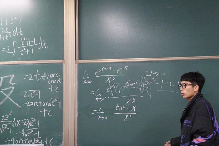 互帮互助,共同进步。高等数学是低年级理工科学生的核心课程、重头戏,同学们时常反映高数课堂学不够、学不饱,或者始终找不到正确的学习方法。因此本学期学院从大一学生中挑选了11名高数成绩优异的同学组建了“高数宣讲团”,利用晚自习的时间每天一题,给同学们分享解题技巧,讲授高数学习的重点难点,多途径助力新生学业发展。活动得到了同学们的一致夸赞。
