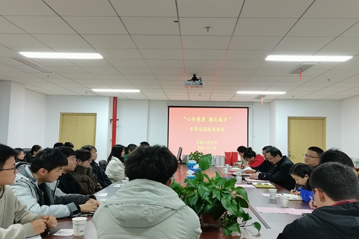 12月24日中午,管理工程学院在阅江楼325会议室开展“心怀感恩 立志成才”冬季送温暖座谈会。管理工程学院关工委常务副主任唐新川、管理工程学院党委书记俞书平、全体辅导员和2021级学生代表参加座谈会,会议由管理工程学院党委副书记、副院长黄锐主持。