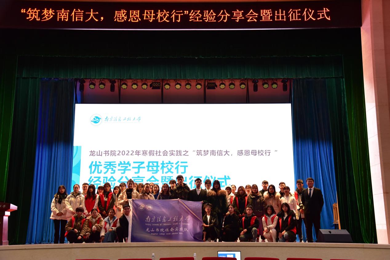 为推进落实我校“优秀学子母校行”寒假社会实践工作,帮助同学们更好地完成“母校行”实践活动,12月24日,龙山书院在风云剧场举办了2022年“优秀学子母校行”寒假社会实践经验分享会暨出征仪式,龙山书院党总支副书记、副院长刘红梅,青协指导老师朱亚钦出席本次活动。根据疫情防控要求,部分2021级学生代表参加了线下活动,其余学生则通过腾讯课堂线上参加活动。