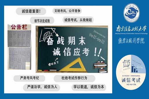 期末考试正在进行中,为营造良好的备考学习氛围,明确考风考纪要求,增强同学们的诚信考试意识,数统院以诚信为主题,开展了一系列的“诚信考试”主题教育活动。
