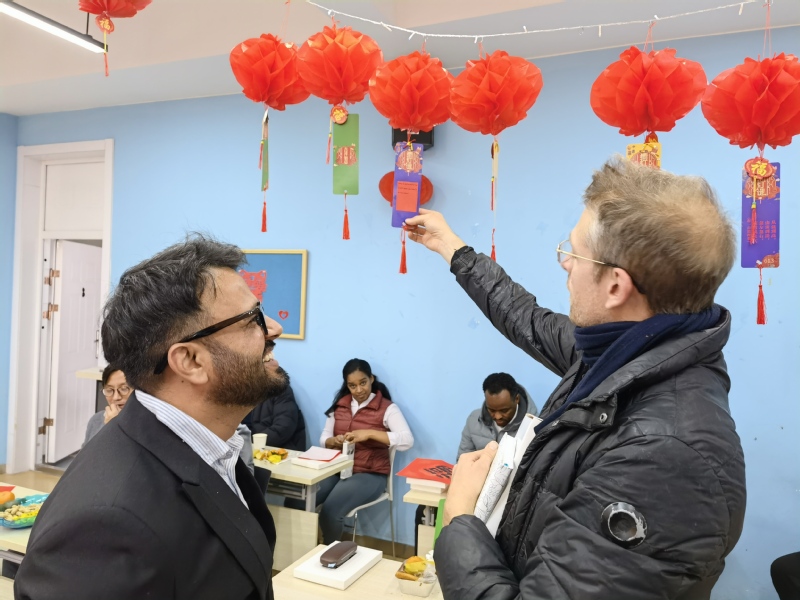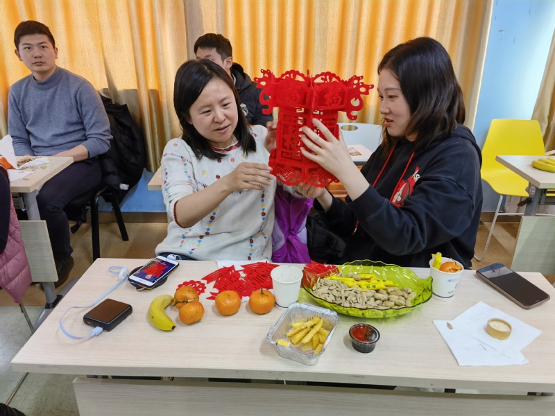 此次联欢会由学院院办史竞、王旭两位老师担任中文和英文主持,学院为全体老师精心准备了剪纸、写福字、做灯笼、猜灯谜等中国传统文化相关的参与性极强的活动,通过实践活动更好的让学院教师更直观的了解中国传统文化,感受浓浓的中国年味。
