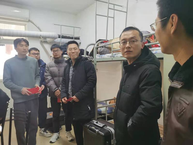 在学生宿舍,宋金暖为同学们送上了新年慰问品,并致以新春祝福,他详细了解同学们寒假期间在校学习、生活的情况,提醒大家要多与父母保持联系,遵守学校防疫规定,做好科学防护。他叮嘱同学们有任何困难,要及时联系辅导员,学院会第一时间给予帮助,并鼓励大家利用假期时间继续努力学习,提升自我。学院的细心安排、领导们的亲切问候让受疫情影响而回不了家的同学,感受到春节的喜悦和家的温暖。
