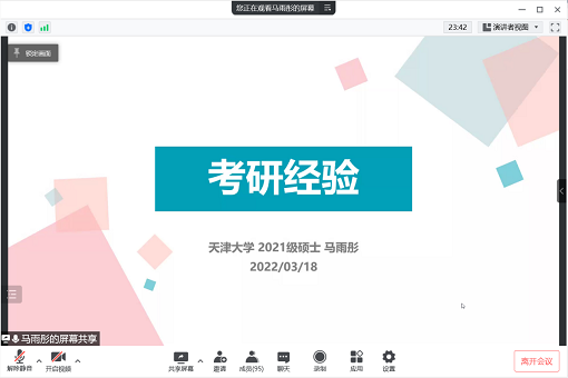 为进一步指导学生做好考研规划、明确考研流程、合理选择院校、积累备考经验,大气科学学院于3月18日晚举办第二期“大气·有成”线上考研经验分享。大气院2021届四位优秀毕业生进行分享,辅导员邹东明老师主持分享会。