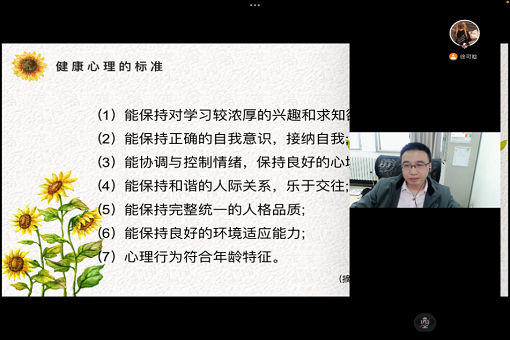 各班根据本班具体情况,设置了形式多样、丰富有趣的班会环节。有的班级通过别开生面的自我介绍,加强了同学们之间的熟悉和联系,大家虽无法相聚教室,但通过网络依旧紧紧连结在一起;有的班级设置了心理故事分享环节,大家通过分享自己感悟深刻的心理小故事,让积极正向的情绪在班级同学中传递;还有班级通过心理委员向全班同学普及了心理健康的知识,为大家讲解心理健康的基本标准,并且引导同学们学习识别情绪、调节情绪,做情绪的主人。最后,班主任、辅导员针对大家当下生活和学习中遇到的各种压力,为大家提供了一系列行之有效的方法,如:与同学亲人保持沟通、主动倾述烦恼、转移注意力、关注官方和权威信息、主动寻求帮助等。