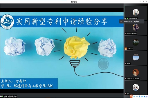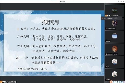 在讲座末尾,詹永冰与方新竹细心地解答了同学们的疑惑,分析了专利申报及书写方面的可能遇到的困难。虽然此次专利讲座是在线上进行,但依旧可以感受到同学们对专利创作和科创精神的热情。