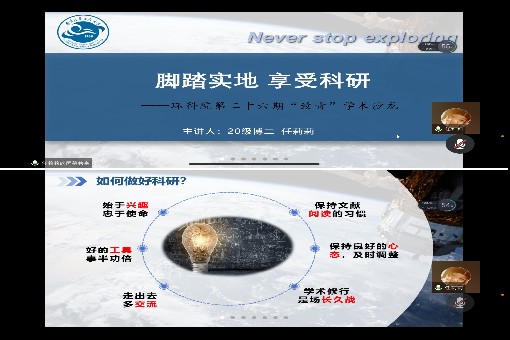 为了营造交流学习、自由探索、活跃思想、促进创新的科研氛围,弘扬敢于质疑、勇于创新、大胆求索的精神。4月15日晚7点,环境科学与工程院通过腾讯会议举办了主题为“以达者师,寻研学路”的线上“致青”学术沙龙,此次邀请到的主讲人是环境科学与工程学院博士任莉莉和中国科学院大气物理研究所博士周浩,约有一百余人参加此次活动。