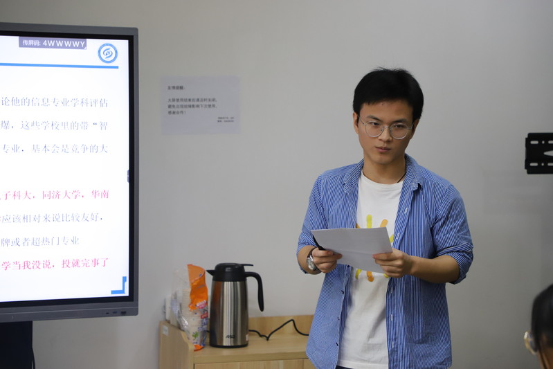 首先徐彰发言。他向同学们罗列了保研加分细则,其中加分项主要有论文、学科竞赛、大创项目、专利和软著、荣誉称号等。他说,夏令营和预推免是准备保研同学的两次机会,需要平衡择校层次与数量。徐彰曾获第四届全国大学生集成电路创新创业大赛全国总决赛一等奖(最高奖项)、全国大学生电子设计竞赛全国一等奖、全国大学生电子设计竞赛—TI杯模拟电子系统设计邀请赛全国二等奖等多项奖项,现已推免至电子科技大学攻读硕士学位。
