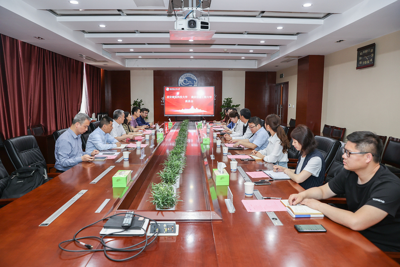 金自康对牛荻涛一行的到来表示欢迎,并简要介绍了我校历史沿革和近年来取得的发展成就。他表示,近年来,学校通过体制机制创新,不断推动学科交叉融合,构建了“一体两翼三维”的一流学科建设布局,以“气象+”“+信息”为建设路径,推动学科水平整体提升,形成了多学科交叉融合发展的良好局面。他说,西安建筑科技大学坐落于历史文化名城,是土木建筑“老八校”之一,办学特色鲜明,希望双方进一步深化交流,携手迈上新台阶。