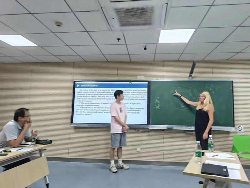 在“国优计划”学生的开题论证环节,Daniela Schmeinck教授进行了详细的点评和指导,她指导学生要充分发挥地理教育的优势,并提出了许多宝贵的意见和建议。
