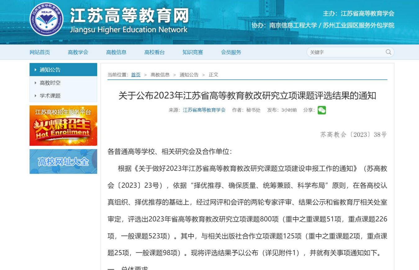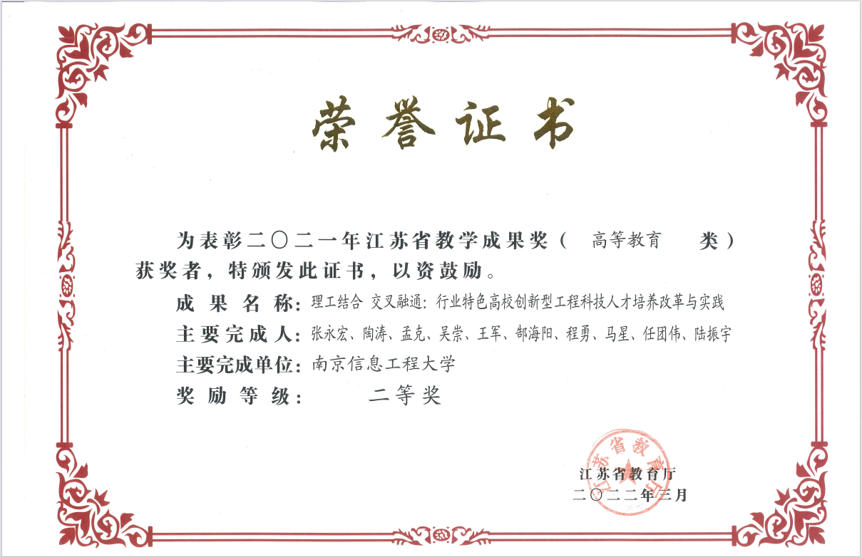 学院在教学改革中取得了较好成果,先后斩获江苏省教学成果奖二等奖1项、教育部产学合作协同育人项目1项、江苏省高等教育教改研究课题立项1项。