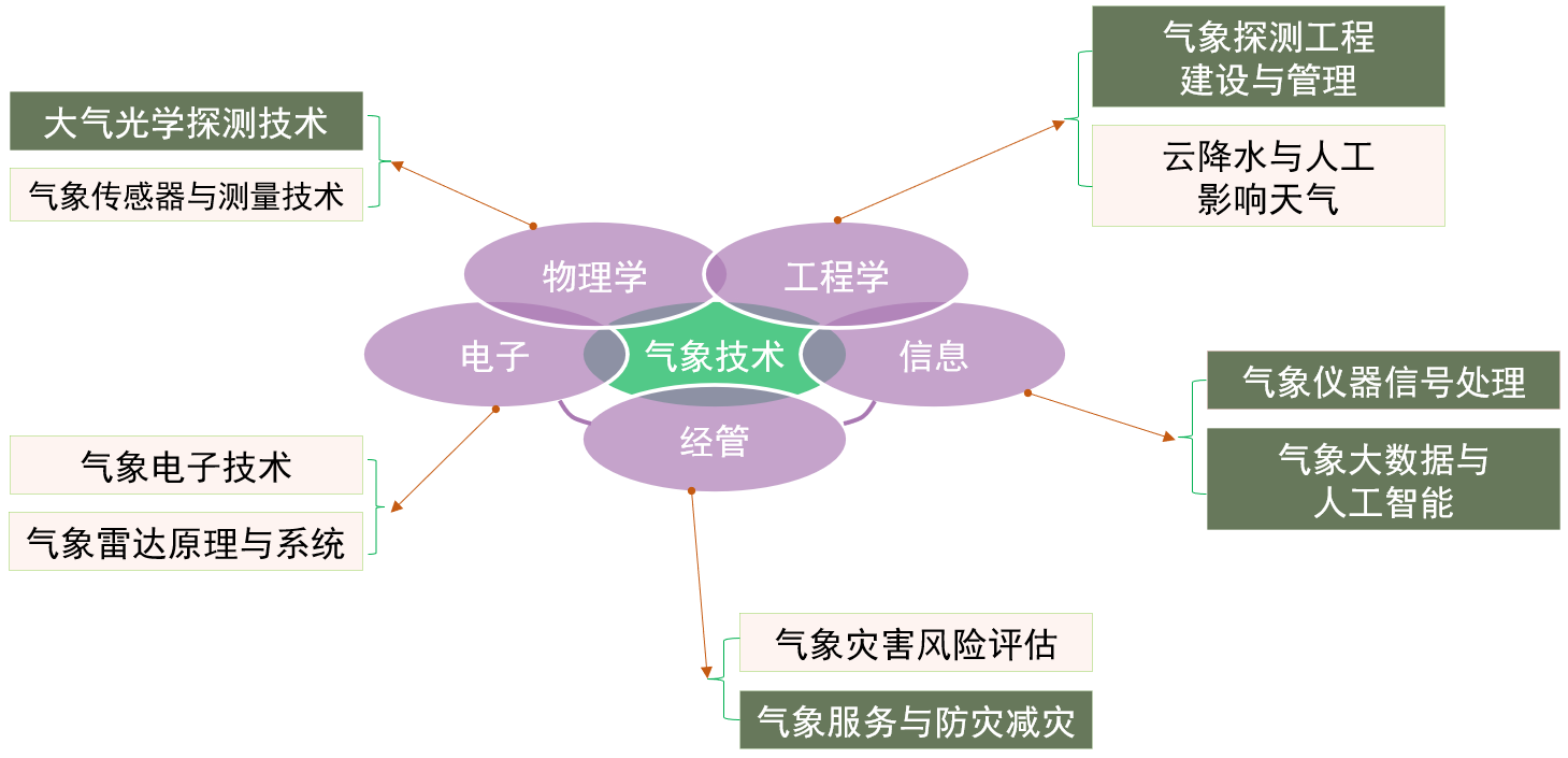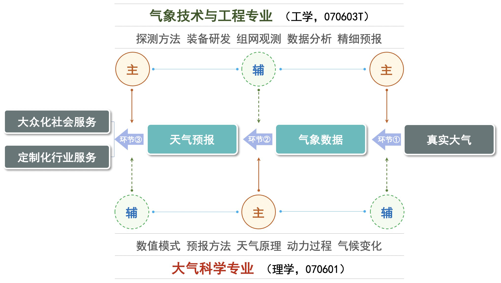 在专业设置方面,大气科学(大气物理模块)和气象技术与工程同为大气科学类下设专业,专业内容紧密相连但侧重点不同,专业互补性强。两专业一理一工、相辅相成,在人才培养的三个环节中形成闭环。