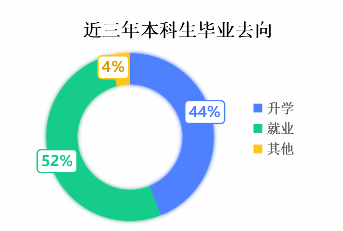 近三年,学院本科生平均就业率95.43%,平均升学率43.57%(境内升学占87%)。境内升学至985、211、双一流高校或重点科研院所攻读研究生的比例高达92%。41名毕业生赴苏黎世联邦理工学院等世界著名大学深造。就业学生中58%以上入职机关、事业单位、国企。