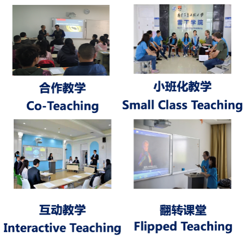 学院推行“能力驱动、分步推进”的国际化教学模式,进行PBL教学法、翻转课堂等教学方法改革,并创新了“南信大教师—雷丁大学教师”、“中教—外教”、“英语教师—专业教师”、“教师—学生”、“学生—学生”合作教学的co-teaching模式,与智慧化教学环境相结合,将教学理念和方法改革融入教学资源研发,发展学生信息化条件下的语言、专业技能,及自主探究学习能力,在潜移默化中培养和提升学生的可迁移技能(transferable skills)。