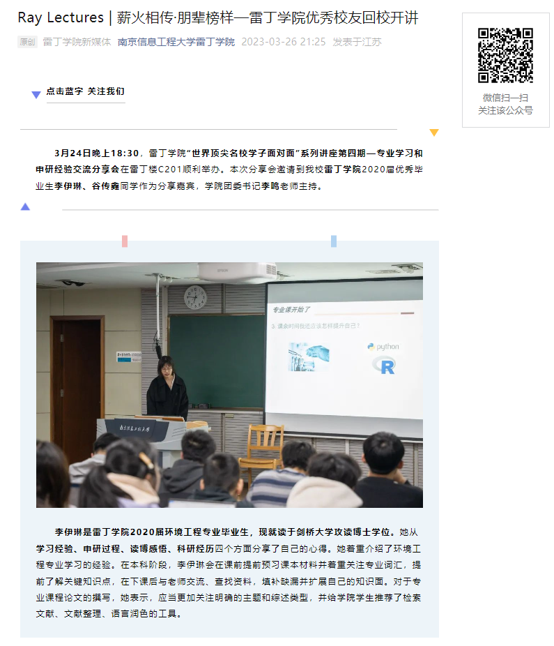 薪火相传·朋辈榜样—雷丁学院优秀校友回校开讲