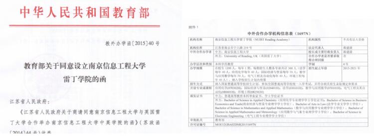 南京信息工程大学雷丁学院正式获批成立