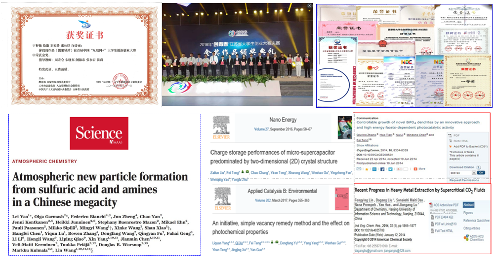 学院学生获中国“互联网+”创新创业大赛金奖、银奖和铜奖4项;其他学科竞赛获奖100余项;近3年,学生发表SCI论文40余篇,其中毕业生姚磊以第一作者在《Science》上发表论文。92%以上的本科生申请过专利,近3年学生每年独立获授权的专利数占全校的30%以上。荣获江苏省优秀本科毕业论文(设计)一等奖4篇。