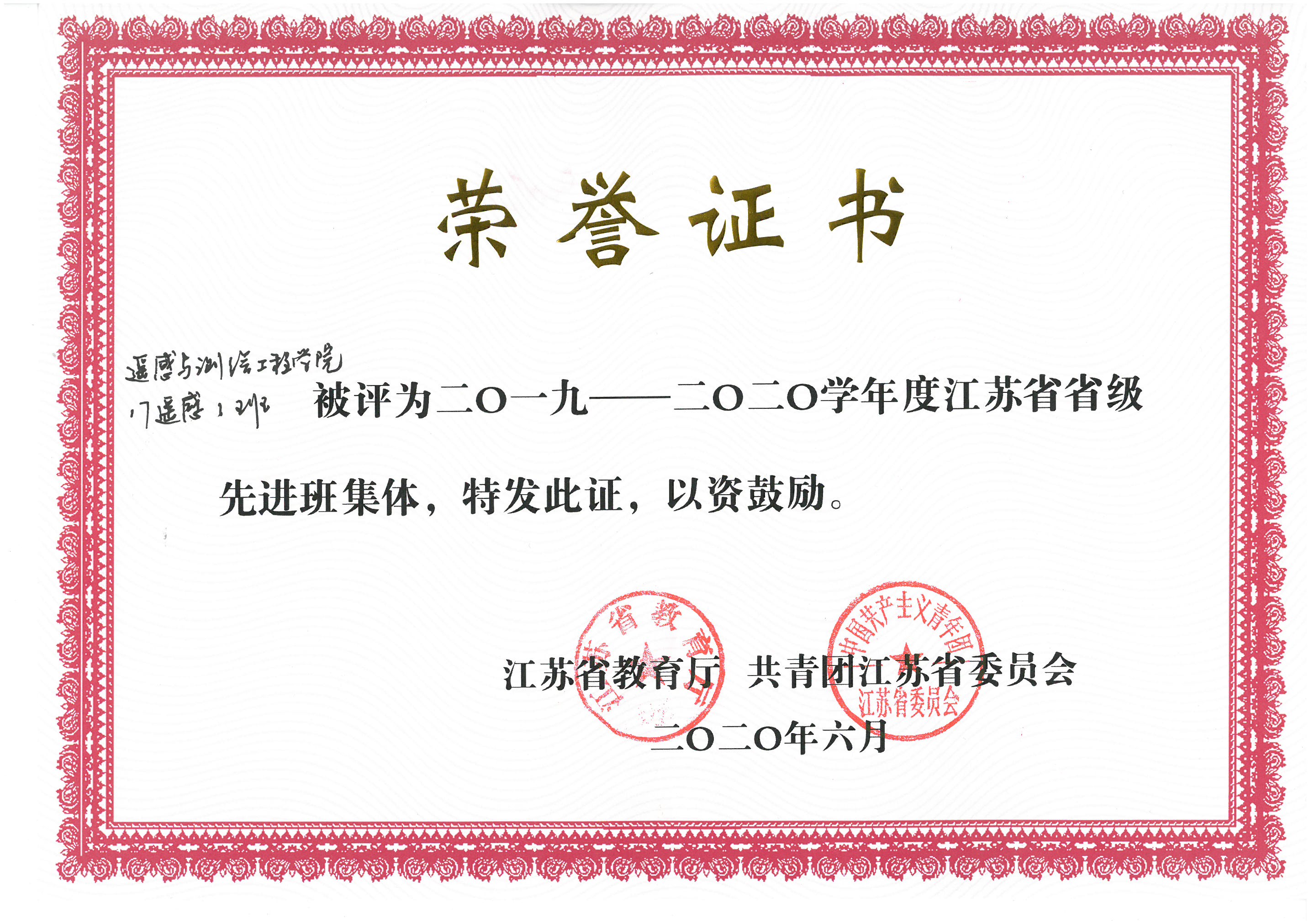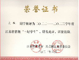 省级三好学生、先进班集体获奖证书