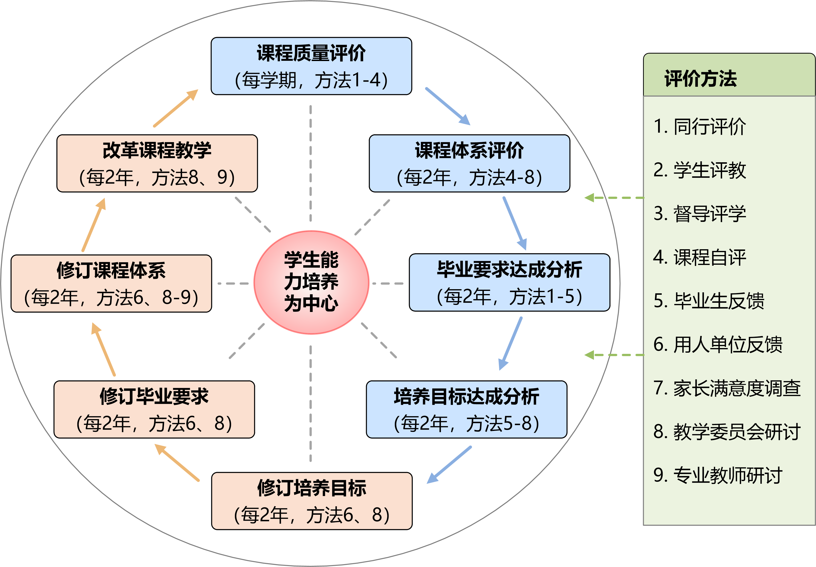 学院坚持“以学生为中心”,不断落实OBE理念,明确教育教学质量标准,并通过闭环教育教学质量保障体系不断加强持续改进。推进教育教学质量标准的具体举措包括: