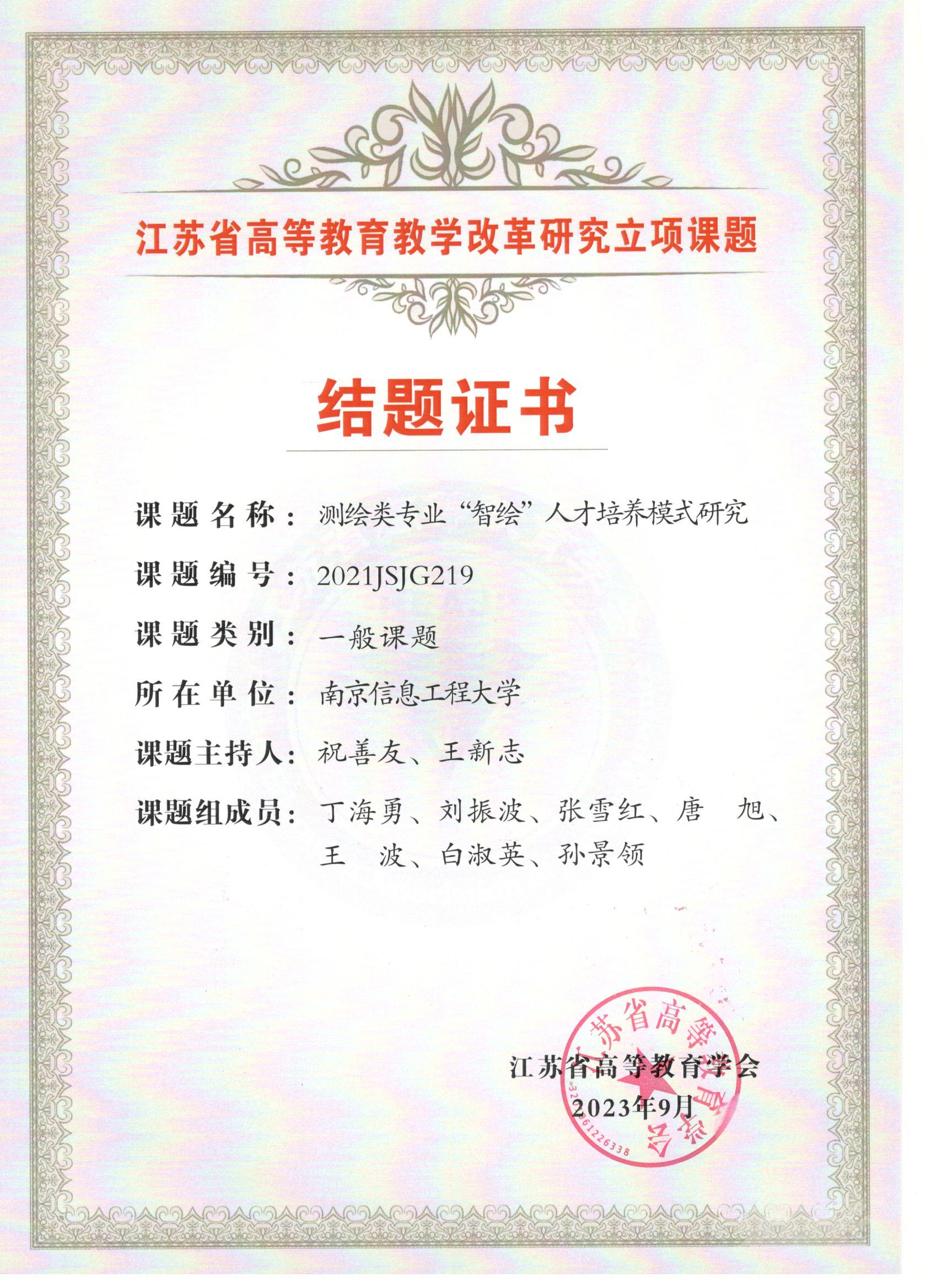 2021年立项的省教改项目结题证书